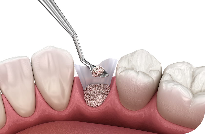 약해진 잇몸뼈를 이식하여 임플란트의 장기적인 수명을 향상시킵니다.